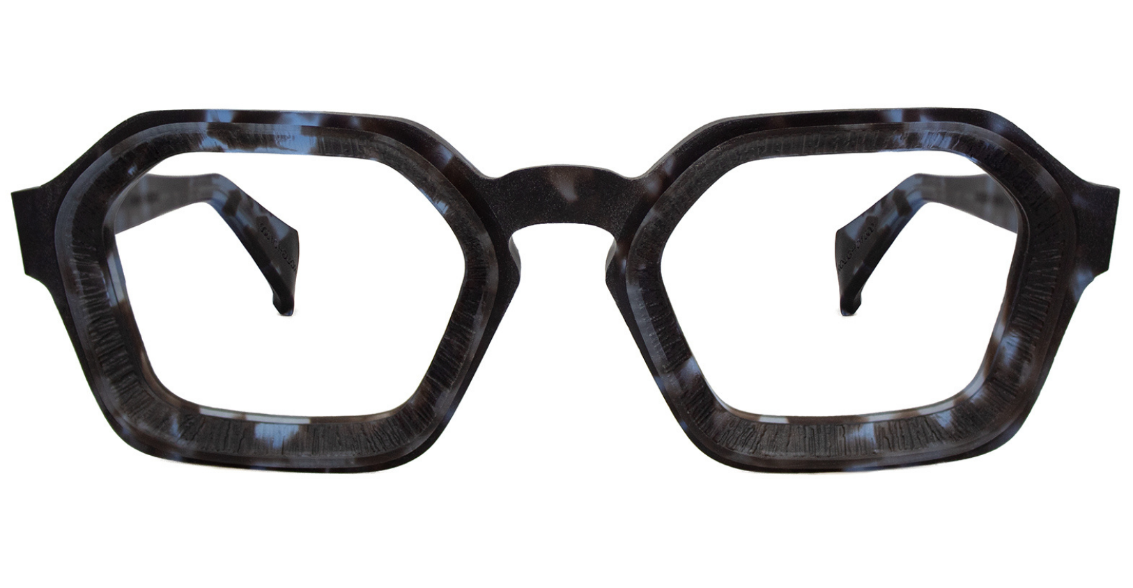 Geometry meets texture. Franco Rough features a bold hexagonal shape, enriched by undercut milling that highlights its volume. Around the lenses, a laser engraving adds a daring touch—drawing attention to the eyes and making them stand out.