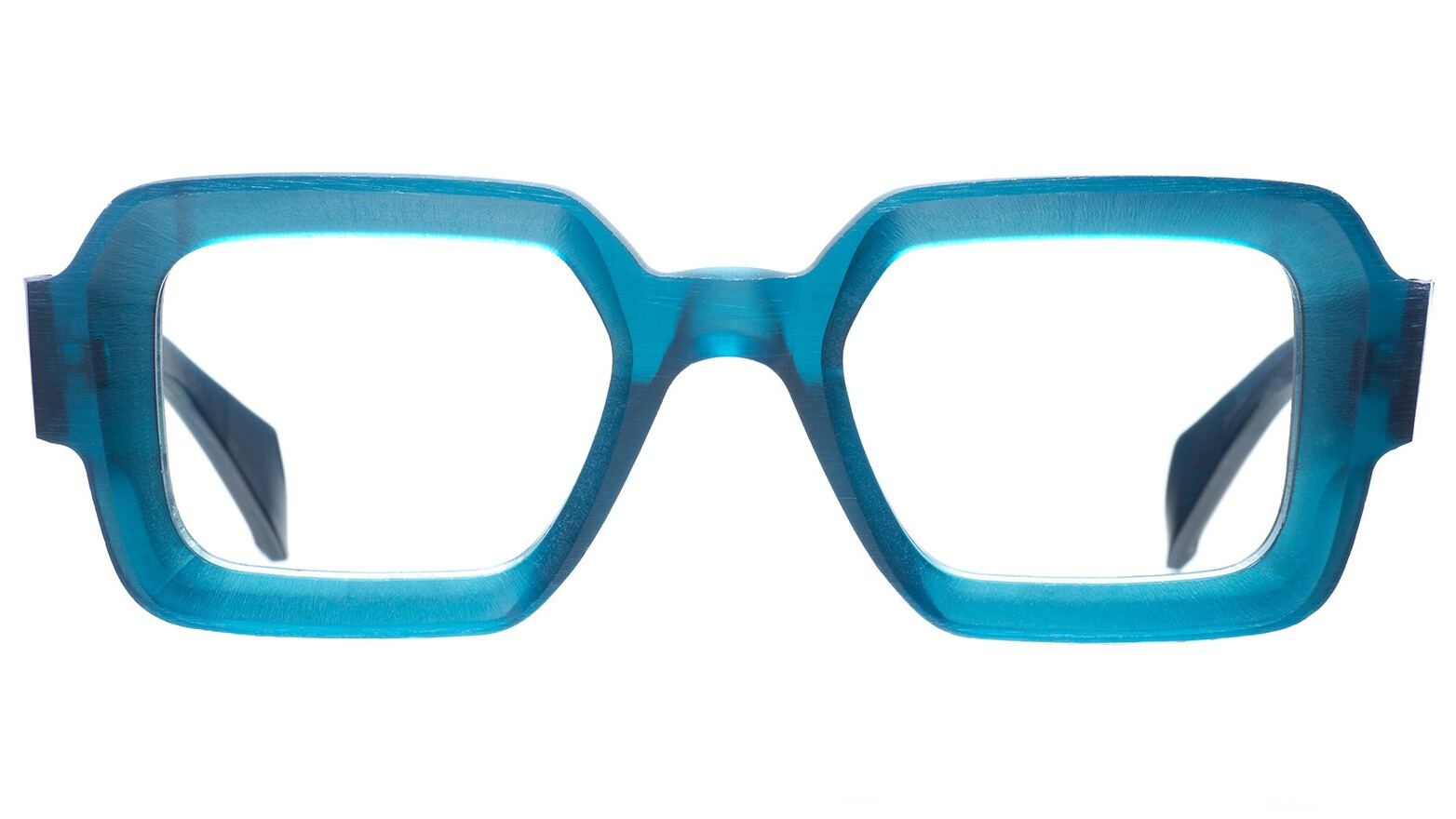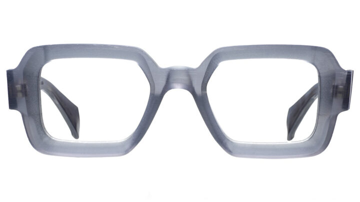 Renato Rough embodies rigor crystallized in material form. The rectangular silhouette highlights the “television” craftsmanship, defining precise volumes and strong proportions. The raw acetate retains the marks of its making, turning them into an integral part of the aesthetic.