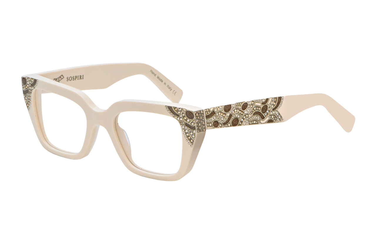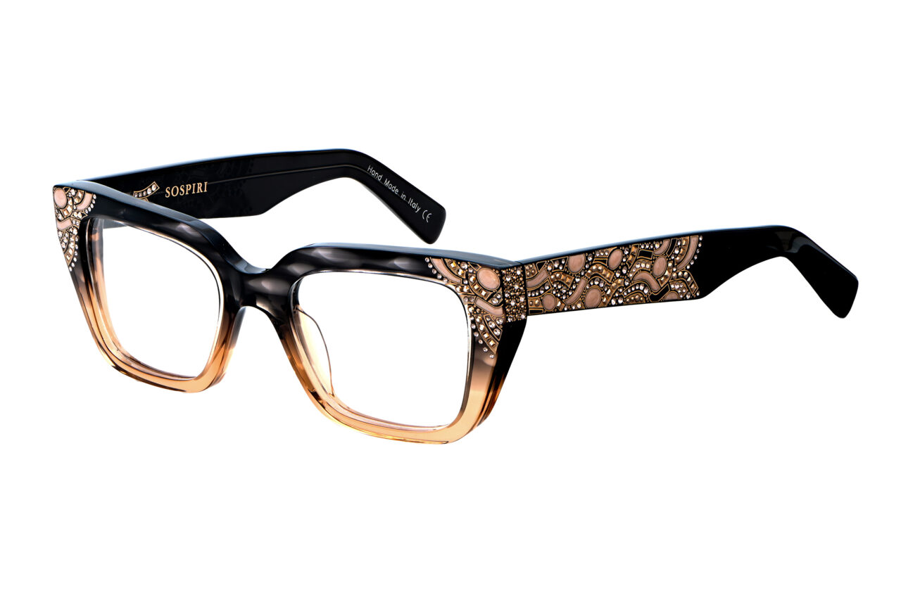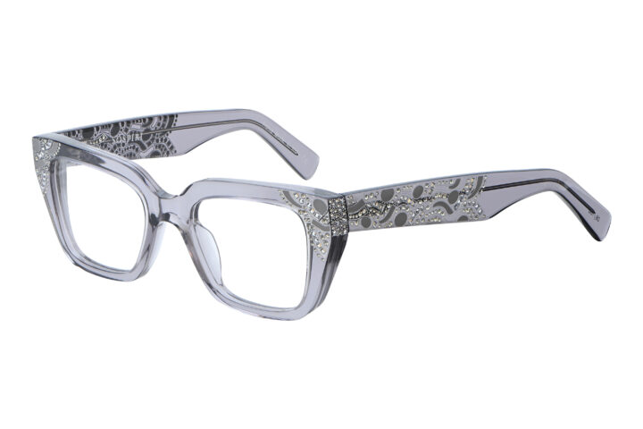Venetian influence appears in the artistic embellishment that extends across the front corners and along the temples, inspired by the ornamental ironwork of historic balconies and bridges. Subtle crystal accents are integrated into the laser work, giving ISLA a decorative presence rooted in surface detail rather than excess.