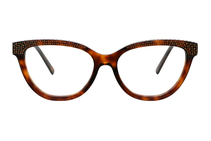 MIUCCIA showcases a graceful, gently rounded silhouette, exuding an air of timeless elegance. Delicate embellishments adorn the brow line and temples, adding a hint of sparkle that enhances the luxurious appeal of the glasses without overpowering their refined design.
