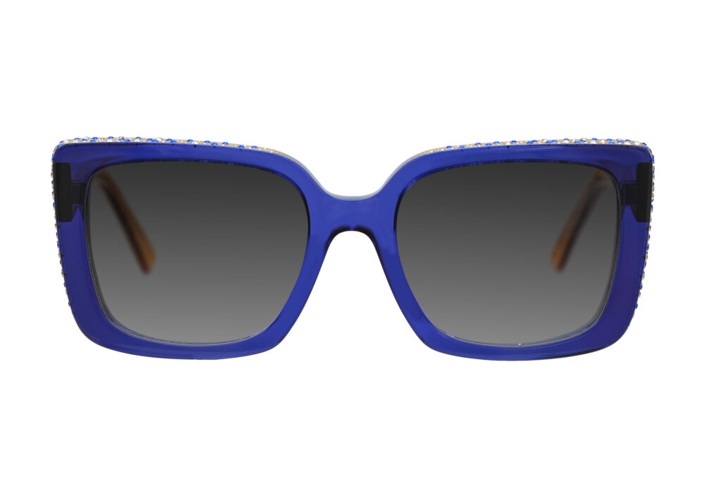 PIA is defined by its oversized shape, giving the model a strong, confident silhouette at first glance. The design becomes distinctive through the detailed temple work, where engraved motifs and crystal placement create a layered, graphic surface.