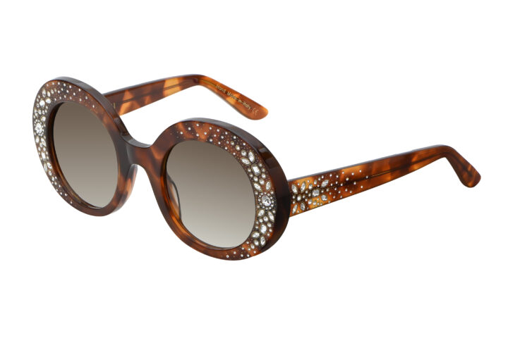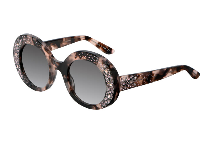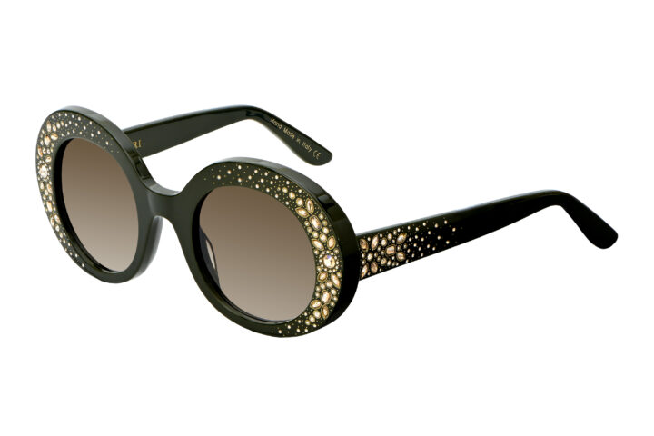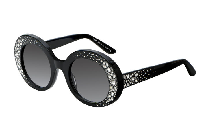 PREZIOSA is defined by its round silhouette, brought to life with crystal clusters that radiate across the brow in intricate patterns. The arrangement recalls the grandeur of Italian ornamentation, giving the model a luminous, jewel-like quality.